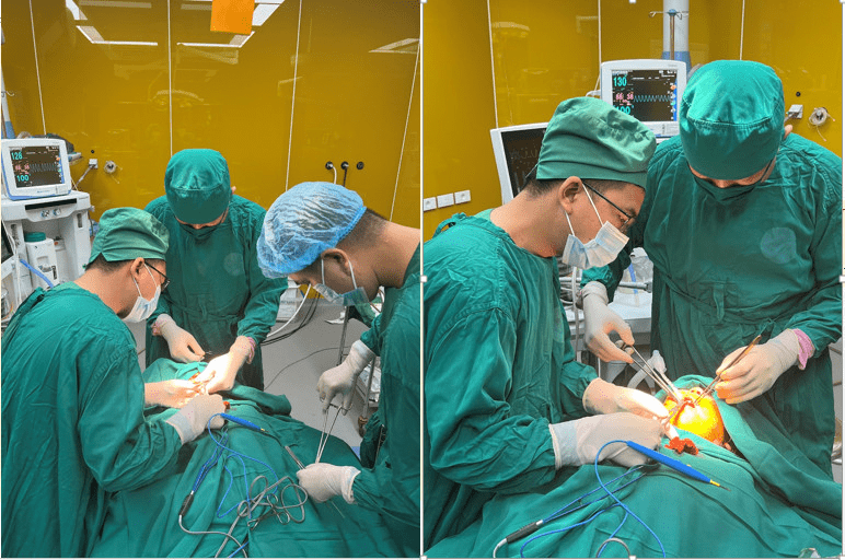 Qua hội chẩn chuyên khoa, các bác sĩ chỉ định phẫu thuật cắt thắng lưỡi cho trẻ. Ca phẫu thuật do Bs.CK1.Vũ Thế Cầu, Bs.CK1.Phạm Thái Bình gây mê cùng kíp KTV của Trung tâm Y tế thành phố Móng Cái, dưới sự hỗ trợ chuyển giao trực tiếp của TTND.Bs.CKII Nguyễn Quốc Hùng. Ca phẫu thuật diễn ra trong khoảng 30 phút.