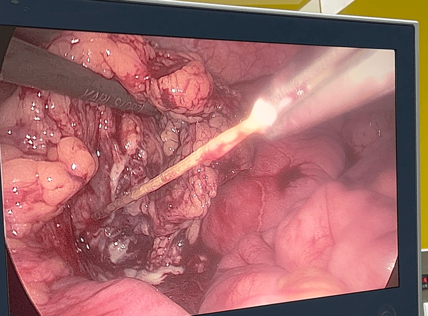 Quá trình mổ nội soi phát hiện mạc nối viêm dính quây vào ổ áp xe vùng hạ sườn trái, bên trong dị vật là 01 que tăm tre dài 4cm đã xuyên thủng thành ruột non, ổ bụng có nhiều dịch viêm lẫn giả mạc. Kíp mổ do Bs.CKI Vũ Thế Cầu, Bs.CKI Phạm Thái Bình cùng kỹ thuật viên, dưới sự hỗ trợ trực tiếp của Thầy thuốc nhân dân, Bs.CKII Nguyễn Quốc Hùng, đã tiến hành lấy dị vật, khâu lỗ thủng, lau rửa và đặt dẫn lưu ổ bụng. Sau 3 ngày, bệnh nhân không còn đau bụng, trung đại tiện tốt, sức khỏe ổn định.