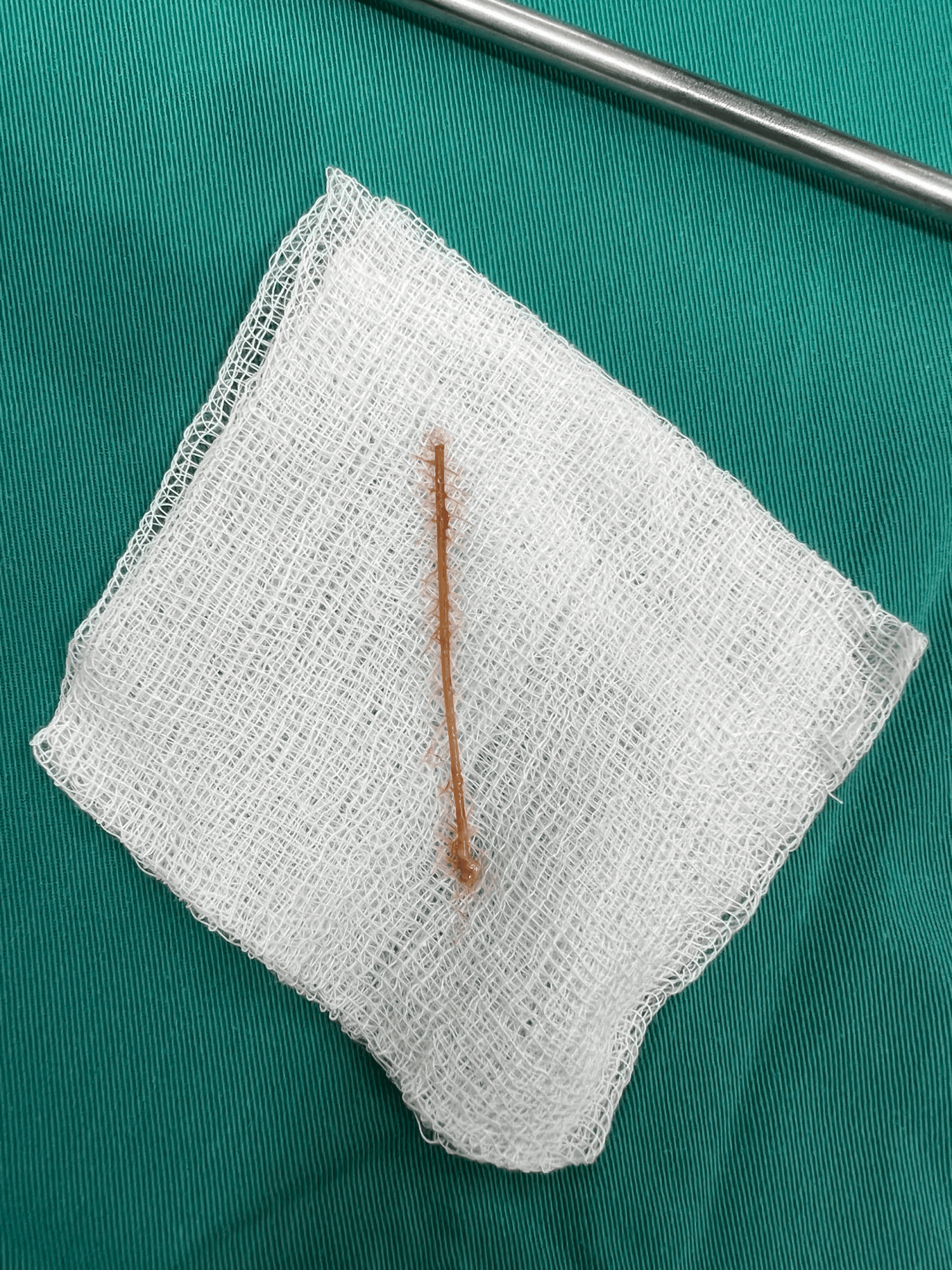 Tăm tre dài 4cm xuyên thủng thành ruột non được lấy ra trong ổ bụng của bệnh nhân
