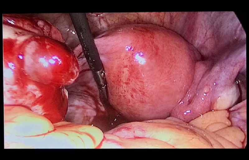 Sau khi khám và hội chẩn bệnh nhân được chẩn đoán: Chửa ngoài tử cung vỡ kèm u nang bì buồng trứng. Bệnh nhân đã được phẫu thuật kịp thời bằng dao siêu âm cắt khối chửa và bóc u bì buồng trứng. Cuộc mổ diễn ra an toàn, bệnh nhân không phải truyền máu và phục hồi tốt.