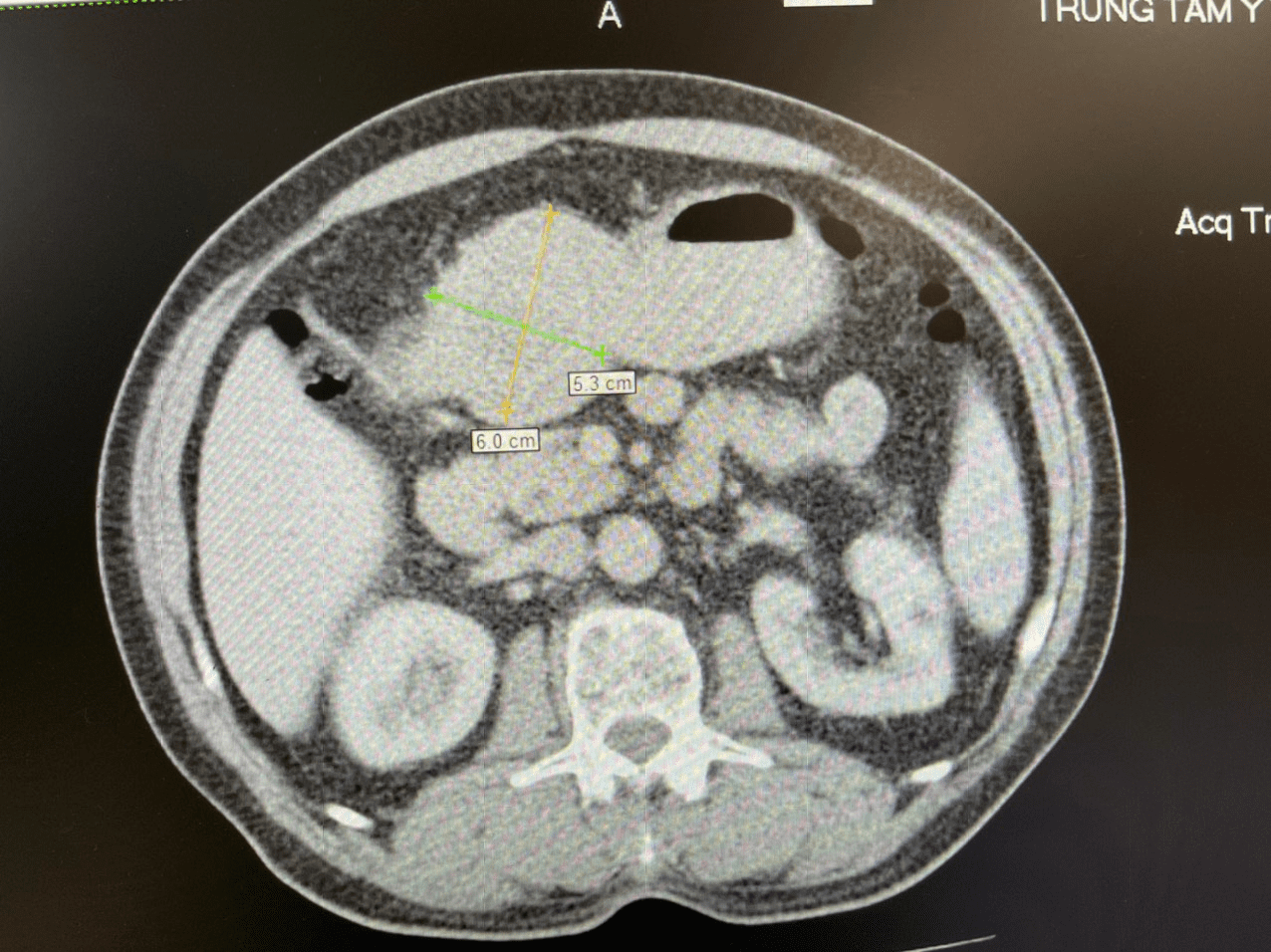 Bệnh nhân Tạ V.S (nam, 71 tuổi), có tiền sử hẹp mạch vành cách đây 8 năm, nhiễm Covid-19 cách đây 3 tháng, một tuần trước khi vào viện bệnh nhân xuất hiện đau bụng thượng vị, đầy hơi, đau tức ngực trái. Khám tại Trung tâm Y tế thành phố Móng Cái, qua kết quả nội soi, siêu âm và chụp cắt lớp vi tính ổ bụng của bệnh nhân phát hiện khối bất thường kích thước 6cm - 5.3cm trong dạ dày. Các bác sĩ đã hội chẩn và chẩn đoán U GIST dạ dày. Bệnh nhân được chỉ định phẫu thuật mổ cắt U GIST.