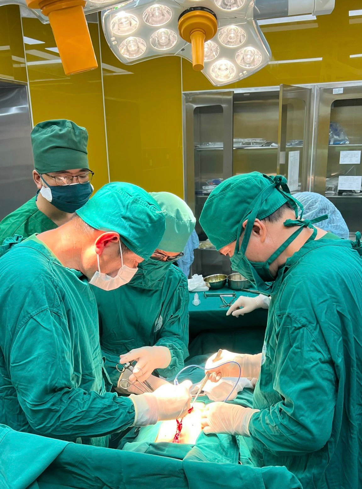 Ekip phẫu thuật, Bác sĩ CKII. Nguyễn Quốc Hùng – Nguyên Giám đốc Bệnh viện Sản Nhi Quảng Ninh (hiện đang trực tiếp cố vấn, hỗ trợ, đào tạo chuyên môn tại Trung tâm Y tế thành phố Móng Cái) cùng y bác sĩ Khoa Ngoại, hồi sức cấp cứu của Trung tâm Y tế thành phố Móng Cái đã tiến hành mở ổ bụng, cắt khối U và 2/3 dạ dày. Sau phẫu thuật, sức khỏe bệnh nhân ổn định, không đau bụng, vết mổ khô, ăn uống lưu thông tốt, sức khỏe hồi phục nhanh sau mổ và đã đủ điều kiện xuất viện.