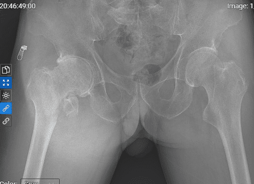 Hình ảnh háng phải của bệnh nhân trước và sau thay khớp toàn phần