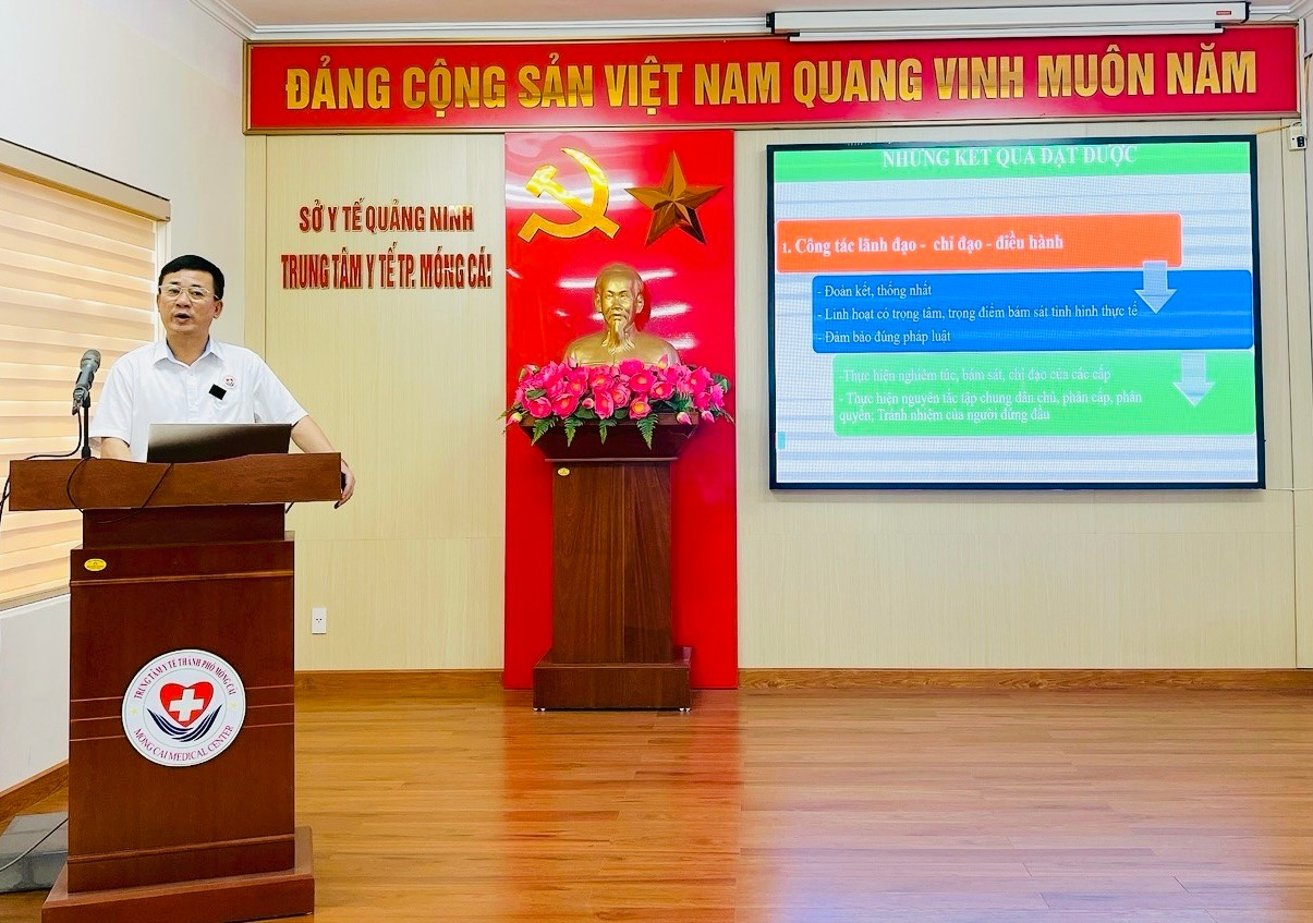 Ths.Bs Đoàn Ngọc Thủy, Giám đốc Trung tâm Y tế TP Móng Cái, phát biểu chỉ đạo tại Hội nghị