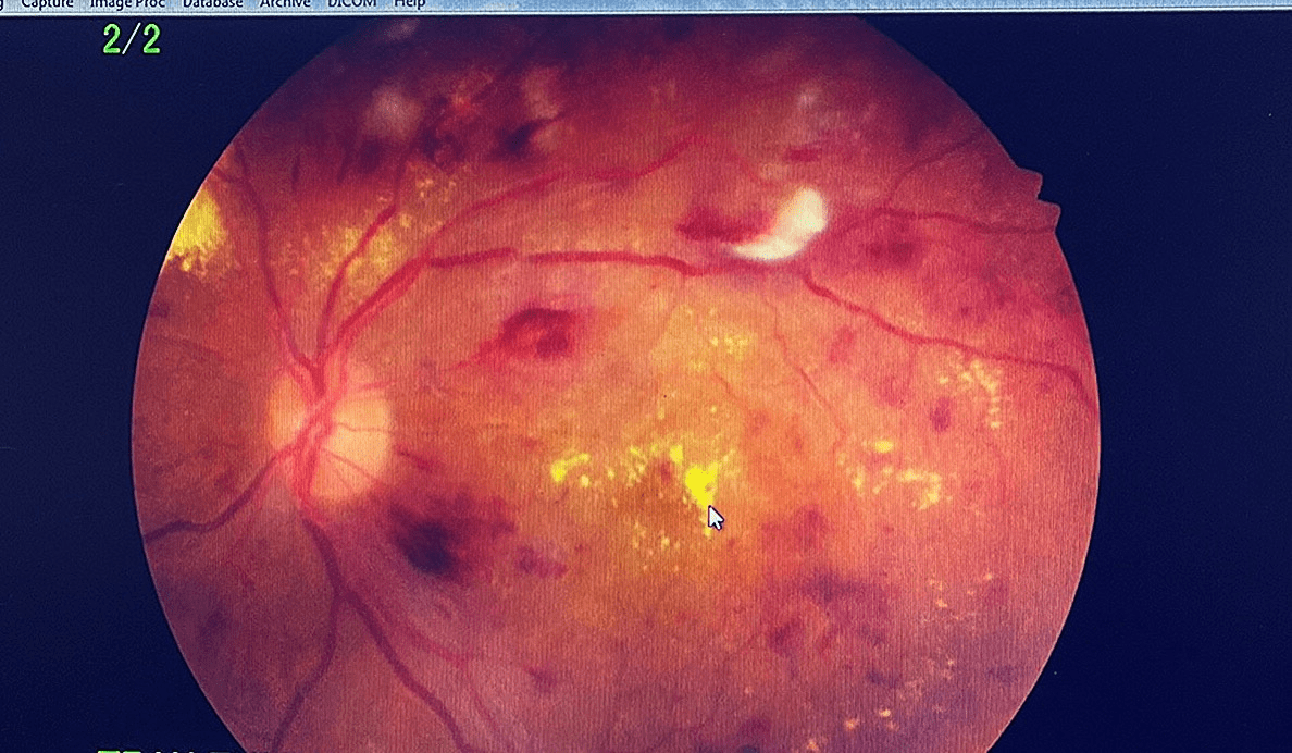 Một số hình ảnh đáy mắt bị tổn thương do biến chứng của tiểu đường và tăng huyết áp