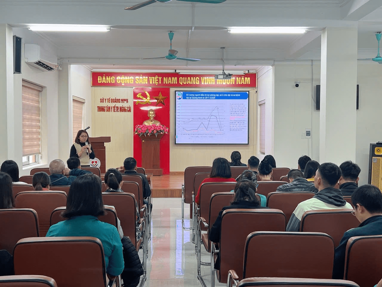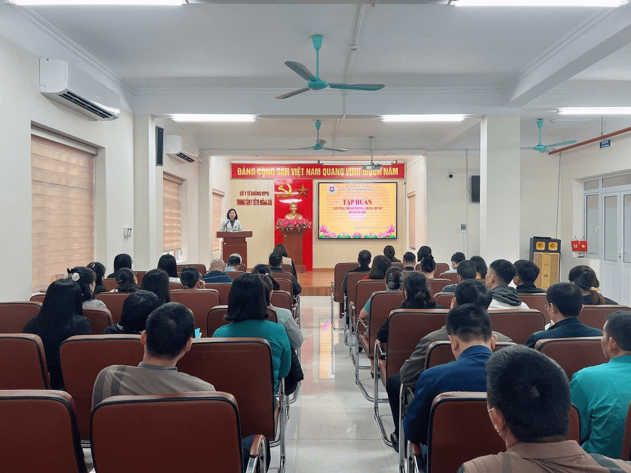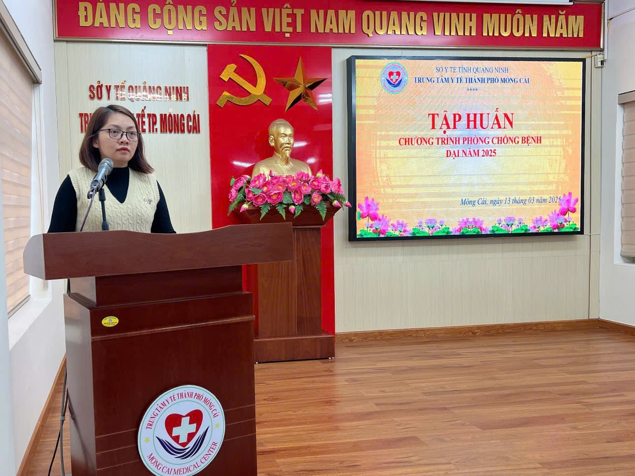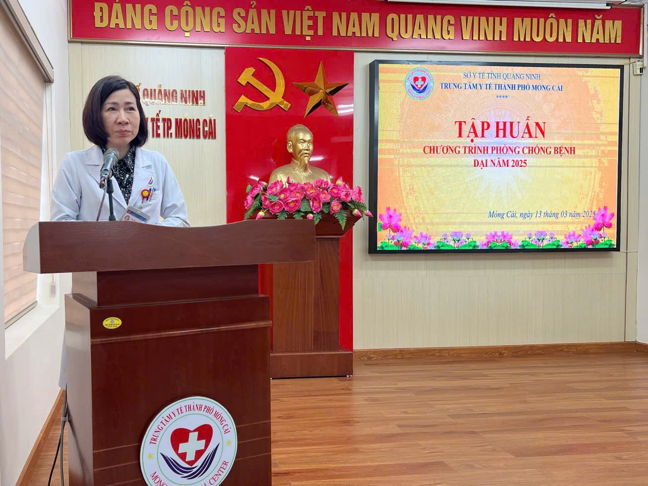 Thực hiện chương trình đào tạo, tập huấn năm 2025. Ngày 13/3/2025, Trung tâm Y tế thành phố Móng Cái phối hợp với Trung tâm Kiểm soát bệnh tật tỉnh Quảng Ninh tổ chức tập huấn chương trình phòng chống bệnh Dại năm 2025 cho cán bộ phụ trách chương trình phòng chống bệnh dại của Trung tâm Y tế, Trạm Y tế xã, phường; nhân viên y tế các phòng tiêm dịch vụ, cán bộ phụ trách thú y xã, phường trên địa bàn thành phố Móng Cái. Bs,CKII. Hoàng Lưu Lan Anh, Phó giám đốc Trung tâm Y tế thành phố Móng Cái, dự và khai mạc lớp tập huấn.