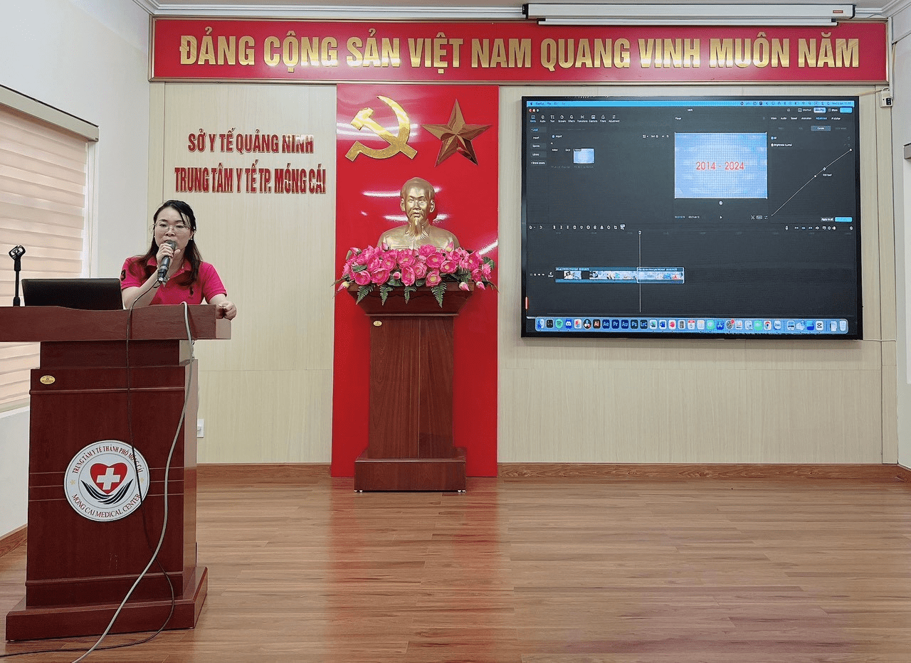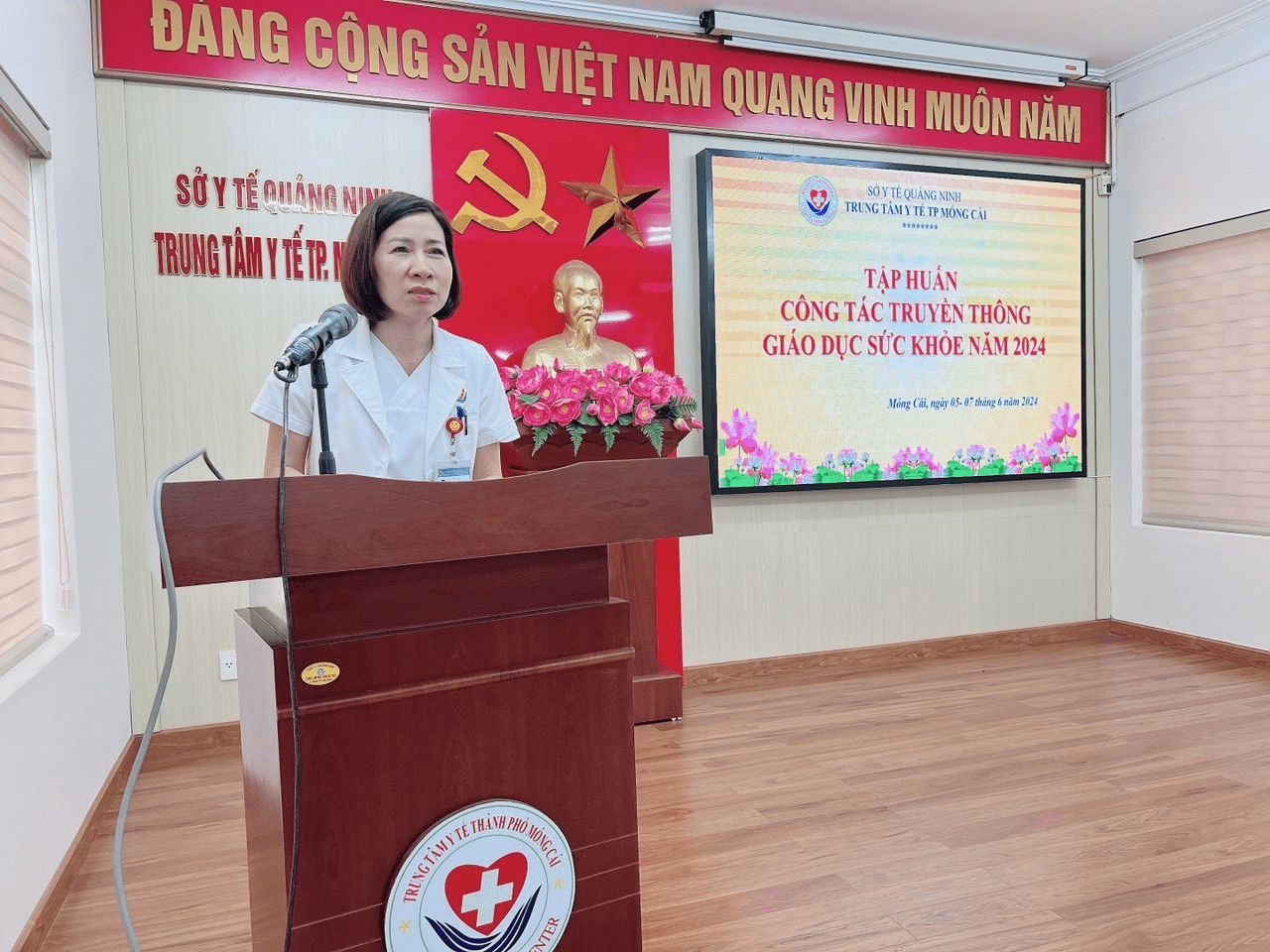 Nhằm nâng cao năng lực về truyền thông giáo dục sức khoẻ cho cán bộ làm công tác y tế trên địa bàn thành phố, từ ngày 5-7/6/2024, Trung tâm Y tế TP Móng Cái phối hợp với Trung tâm Kiểm soát bệnh tật tỉnh tổ chức tập huấn kỹ năng truyền thông giáo dục sức khoẻ (TTGDSK) cho trên 40 cán bộ truyền thông của các khoa, phòng, trạm Y tế xã, phường thuộc Trung tâm. Đồng chí Hoàng Lưu Lan Anh, Phó Giám đốc Trung tâm Y tế TP Móng Cái dự và khai mạc lớp tập huấn.