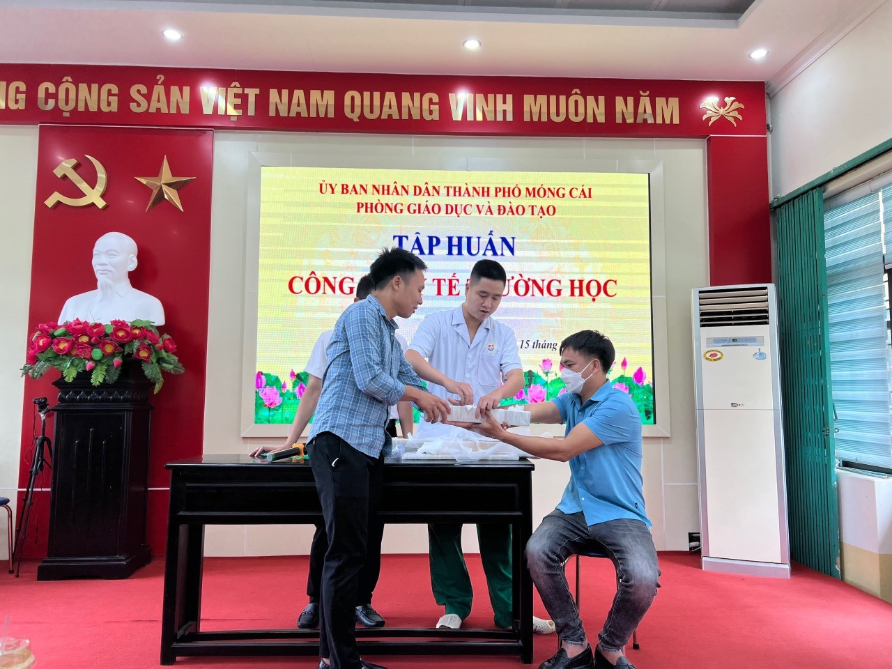 Ngày 15/9/2023, Trung tâm Y tế TP Móng Cái phối hợp với Phòng Giáo dục và đào tạo TP Móng Cái tổ chức tập huấn công tác y tế trường học cho 118 cán bộ phụ trách y tế của các trường học trên địa bàn thành phố. Lớp tập huấn do y – bác sĩ của Trung tâm y tế thành phố Móng Cái trực tiếp truyền đạt.