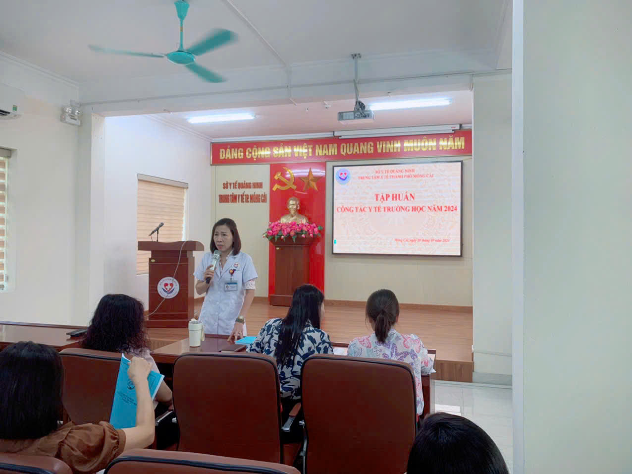 Ngày 20/9, Trung tâm Y tế TP Móng Cái phối hợp với Trung tâm kiểm soát bệnh tật tỉnh tổ chức tập huấn công tác y tế trường học cho cán bộ phụ trách chương trình y tế trường học và cán bộ y tế của các trường học trên địa bàn thành phố. Lớp tập huấn do cán bộ trung tâm kiểm soát bệnh tật trực tiếp truyền đạt.