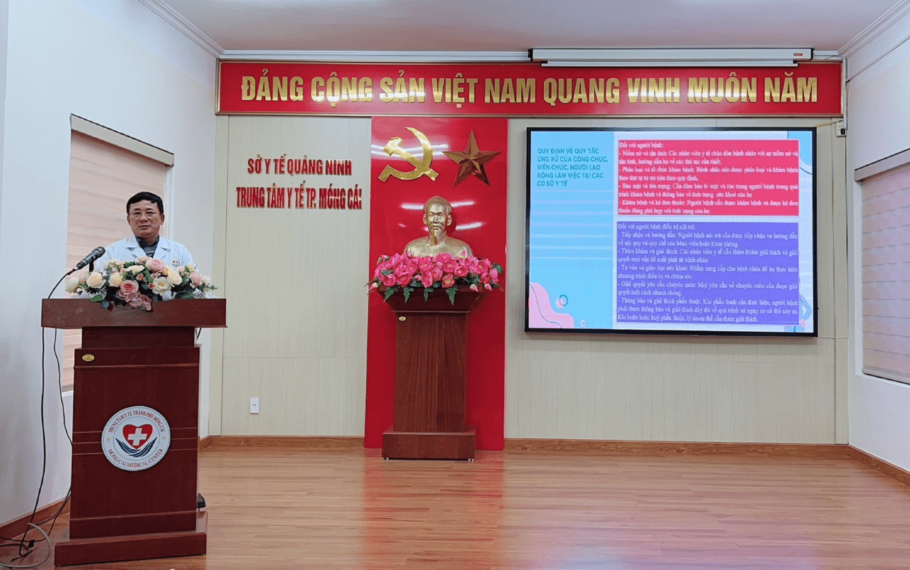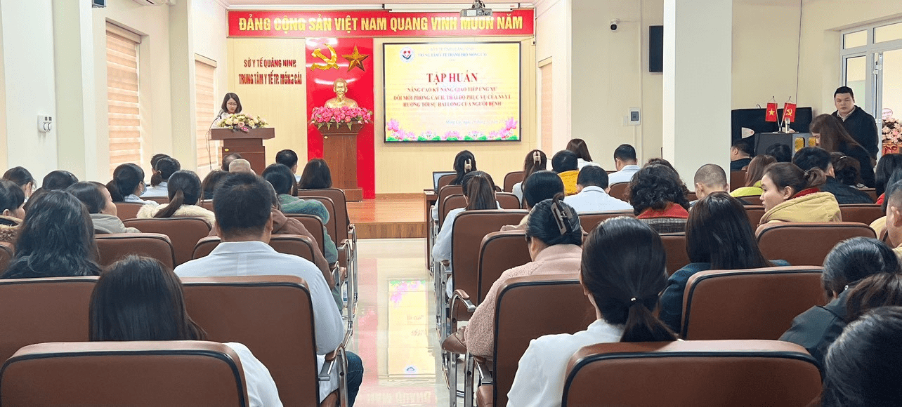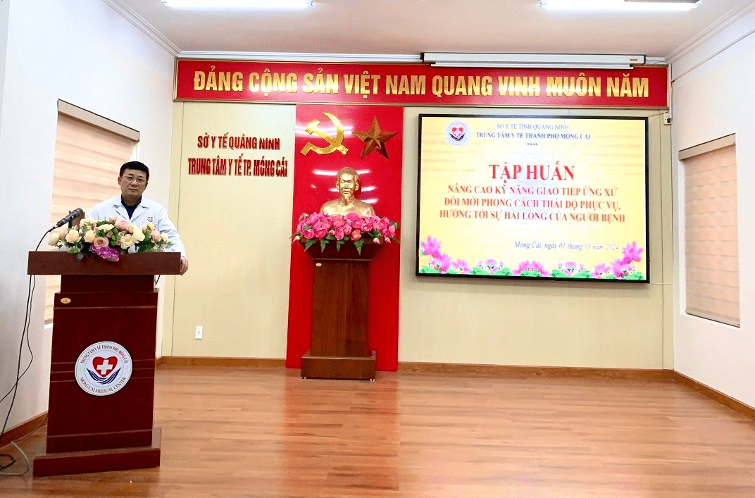 Thực hiện chủ đề công tác năm 2024 về “Phát triển, nâng cao chất lượng dịch vụ y tế, văn hóa giao tiếp ứng xử của cán bộ, nhân viên y tế” và chương trình công tác năm. Trong hai ngày (29/2 và 01/3/2024), Trung tâm Y tế thành phố Móng Cái đã tổ chức Hội nghị tập huấn “Nâng cao kỹ năng giao tiếp, ứng xử, đổi mới phong cách thái độ phục vụ, hướng tới sự hài lòng của người bệnh” cho cán bộ, nhân viên y tế trong toàn Trung tâm. Ths.Bs. Đoàn Ngọc Thủy, Bí thư Đảng ủy, Giám đốc Trung tâm dự khai mạc và trực tiếp chuyển tải các nội dung chương trình tập huấn.