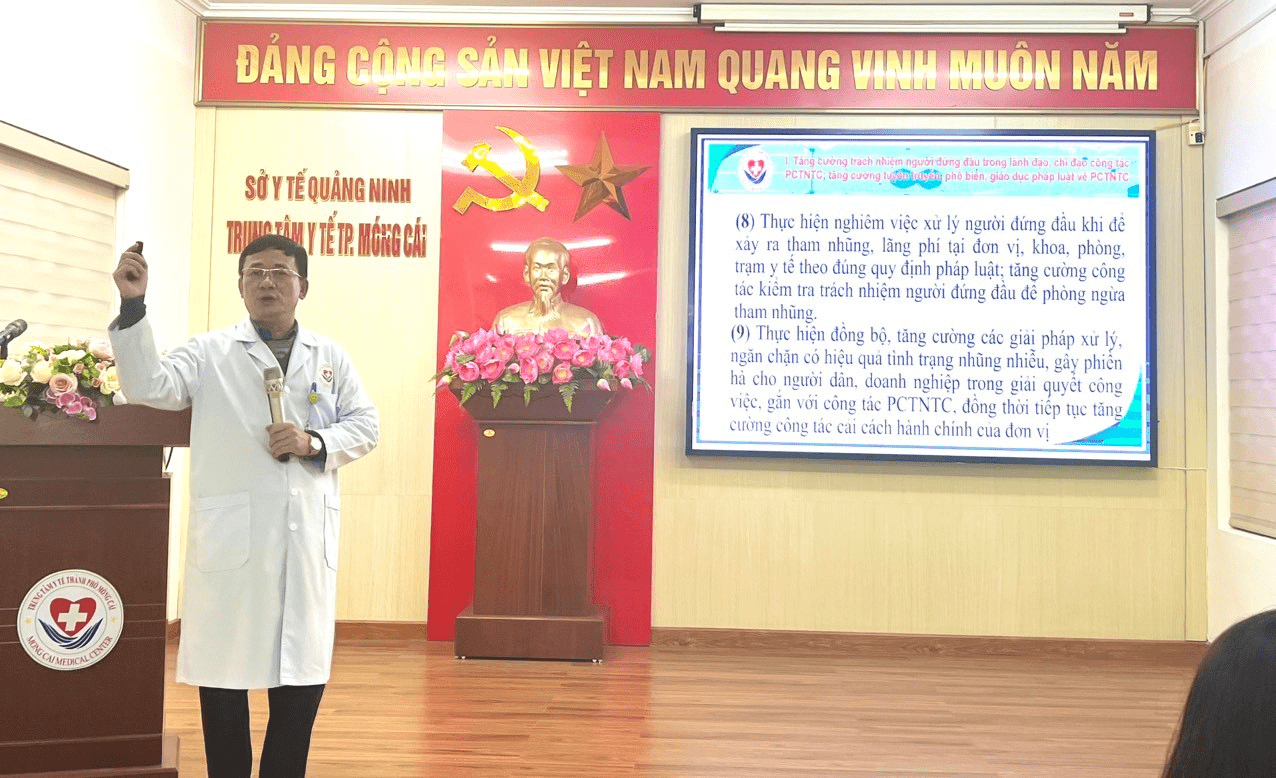 Cũng tại buổi tập huấn, Ths.Bs Đoàn Ngọc Thủy, Bí thư Đảng ủy, Giám đốc Trung tâm đã dành thời gian nhất định để quán triệt, triển khai Chỉ thị số 10/CT-TTg ngày 22/4/2019 về việc tăng cường xử lý, ngăn chặn có hiệu quả tình trạng nhũng nhiễu, gây phiền hà cho người dân, doanh nghiệp trong giải quyết công việc của Sở Y tế và Trung tâm y tế năm 2024 theo Kế hoạch số 504/KH-SYT ngày 01/02/2024 của Sở Y tế Quảng Ninh và Kế hoạch số 221/KH-TTYT ngày 01/3/2024 của Trung tâm, cho toàn thể cán bộ, đảng viên, viên chức, người lao động trong toàn Trung tâm. Nội dung tập trung các vấn đề: Nâng cao nhận thức, trách nhiệm của mỗi cán bộ, viên chức, lao động của Trung tâm về chấp hành đạo đức công vụ, kỷ luật, kỷ cương hành chính trong quá trình thực thi nhiệm vụ; cải cách hành chính, công khai, minh bạch trong hoạt động của cơ quan, đơn vị, đổi mới công nghệ quản lý; trách nhiệm của người đứng đầu trong việc phát hiện, xử lý, ngăn chặn có hiệu quả tình trạng nhũng nhiễu, gây phiền hà cho người dân, doanh nghiệp trong giải quyết công việc.
