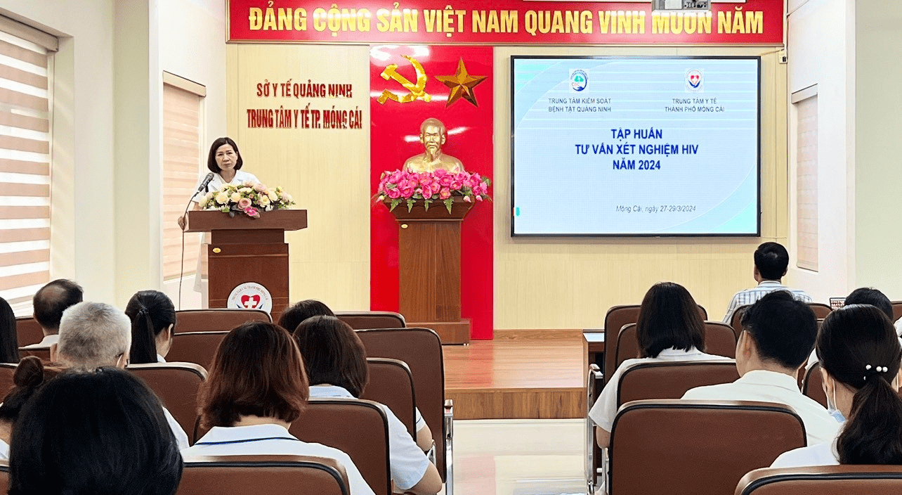 Sáng ngày 27/3/2024, Tại Trung tâm Y tế thành phố Móng Cái đã Khai mạc lớp tập huấn tư vấn xét nghiệm HIV năm 2024 cho trên 30 học viên là bác sĩ, điều dưỡng, hộ sinh, kỹ thuật viên của Trung tâm. Lớp tập huấn do Trung tâm Y tế thành phố Móng Cái phối hợp với Trung tâm kiểm soát bệnh tật tỉnh Quảng Ninh tổ chức.