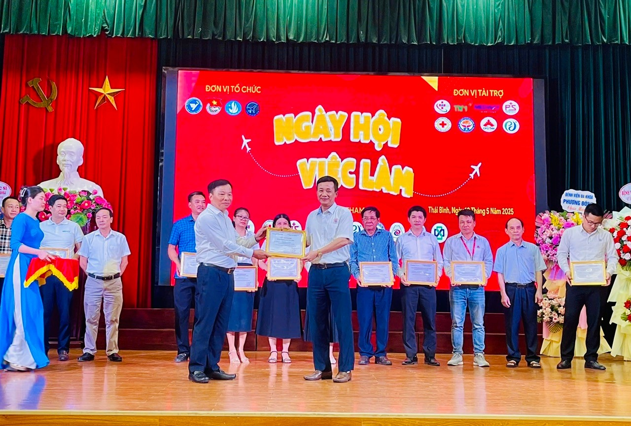 Ths.Bs Đoàn Ngọc Thủy, Giám đốc Trung tâm, nhận giấy chứng nhận của Trường Đại học Y dược Thái Bình tại hội chợ việc làm