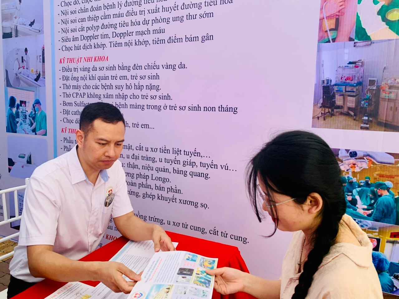 Tại “Ngày hội việc làm 2025” gian hàng của Trung tâm Y tế thành phố Móng Cái đã thu hút gần 100 lượt sinh viên, đại biểu đến tham quan, tìm hiểu về nhu cầu thu hút, tuyển dụng, cũng như định hướng phát triển của Trung tâm trong năm 2025 và những năm tiếp theo