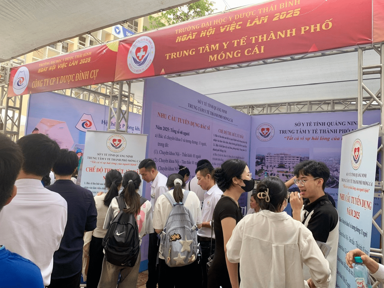 Ngày 10/05/2025, tại trường Đại học Y Dược Thái Bình, Trung tâm Y tế thành phố Móng Cái tham gia “Ngày hội việc làm 2025” với gian hàng giới thiệu công tác tuyển dụng và chế độ ưu đãi cũng như định hướng phát triển của Trung tâm Y tế thành phố Móng Cái. Gian hàng đã thu hút đông đảo đại biểu cùng sinh viên nhà trường tham quan.