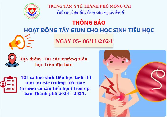 THÔNG BÁO TỔ CHỨC HOẠT ĐỘNG TẨY GIUN CHO HỌC SINH TIỂU HỌC TRÊN ĐỊA BÀN THÀNH PHỐ MÓNG CÁI NĂM 2024