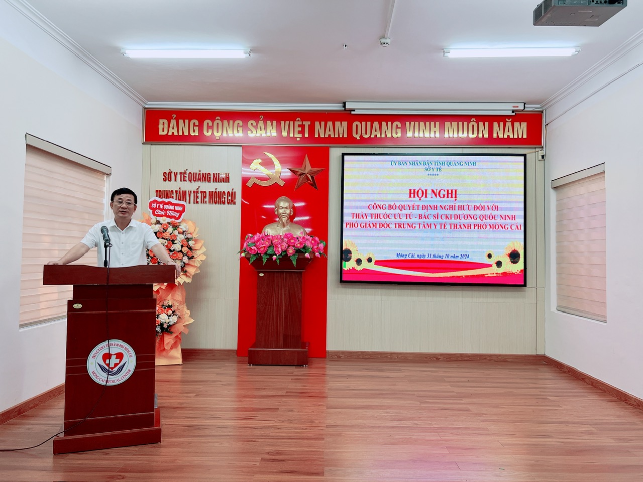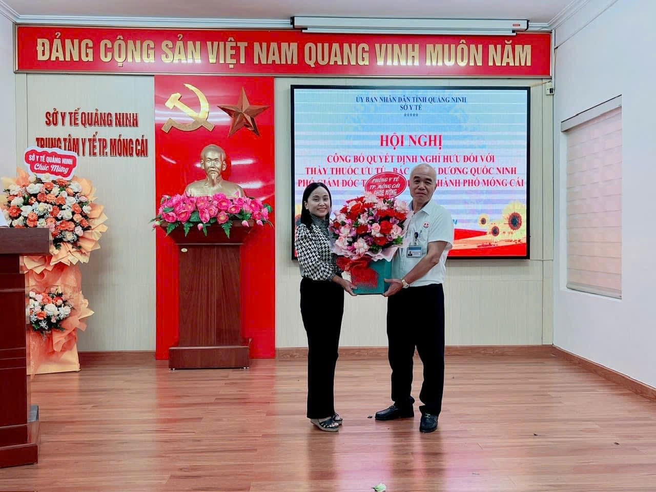 TRAO QUYẾT ĐỊNH NGHỈ HƯU CHO THẦY THUỐC ƯU TÚ, BÁC SĨ CHUYÊN KHOA I DƯƠNG QUỐC NINH, PHÓ GIÁM ĐỐC TRUNG TÂM Y TẾ THÀNH PHỐ MÓNG CÁI