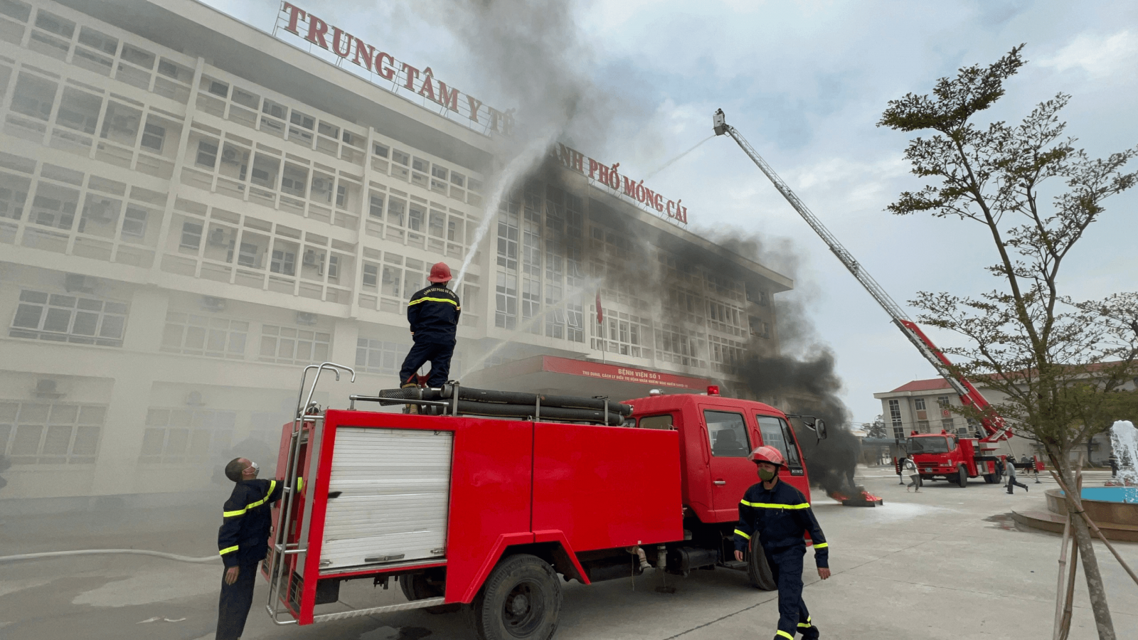 TRUNG TÂM Y TẾ THÀNH PHỐ MÓNG CÁI: DIỄN TẬP PHÒNG CHÁY, CHỮA CHÁY VÀ CỨU NẠN, CỨU HỘ NĂM 2023