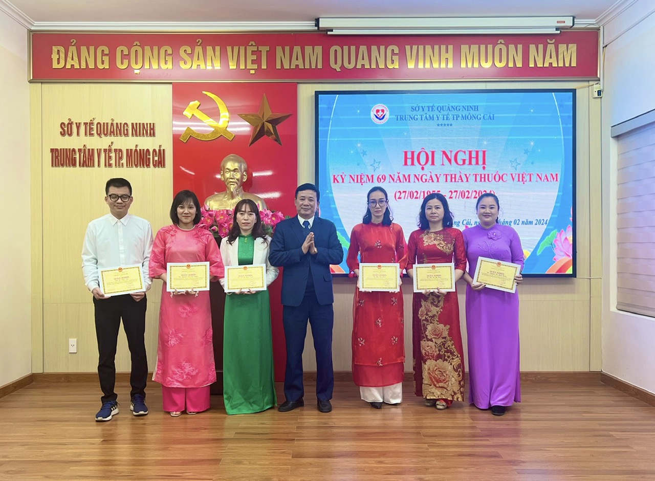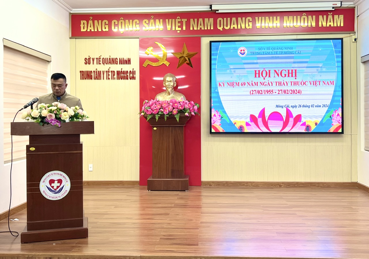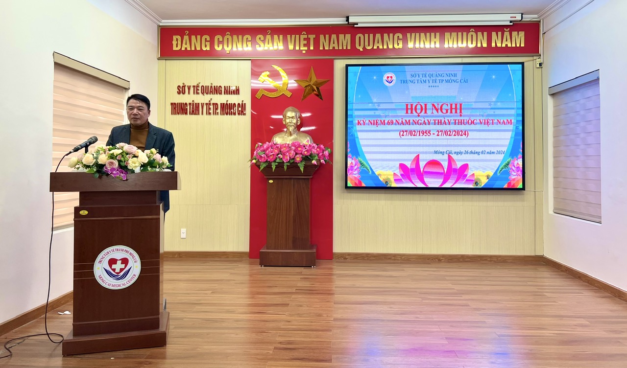 Ngày 26/02/2024, Trung tâm Y tế thành phố Móng long trọng tổ chức hội nghị kỷ niệm 69 năm ngày Thầy thuốc Việt Nam (27/02/1955-27/02/2024). Ths.Bs Đoàn Ngọc Thủy, Bí thư Đảng ủy, Giám đốc Trung tâm chủ trì hội nghị. Tham dự hội nghị, có các đồng chí trong Ban chấp hành Đảng bộ, Ban Giám đốc, Ban chấp hành Công đoàn, Đoàn thanh niên; các đồng chí trưởng, phó, phụ trách khoa, phòng, trạm y tế xã, phường; điều dưỡng trưởng, kỹ thuật viên trưởng và tổ trưởng công đoàn các khoa/phòng/trạm y tế thuộc Trung tâm.