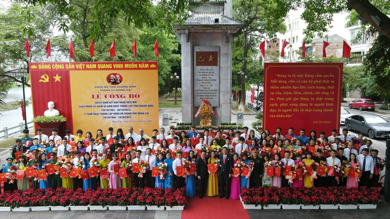 Sáng 19/10, tại Di tích Biểu tượng nơi thành lập Chi bộ Đảng Cộng sản Việt Nam đầu tiên của huyện Móng Cái, BCH Đảng bộ TP Móng Cái long trọng tổ chức Lễ công bố quyết định kết nạp đảng viên mới chào mừng kỷ niệm 60 năm Ngày thành lập tỉnh Quảng Ninh (30/10/1963 - 30/10/2023) và 15 năm ngày thành lập TP Móng Cái (24/9/2008 - 24/9/2023). Đảng bộ trung tâm y tế thành phố Móng Cái có 07 đ/c vinh dự được Đảng bộ thành phố trao quyết định kết nạp đảng viên mới trong dịp này.