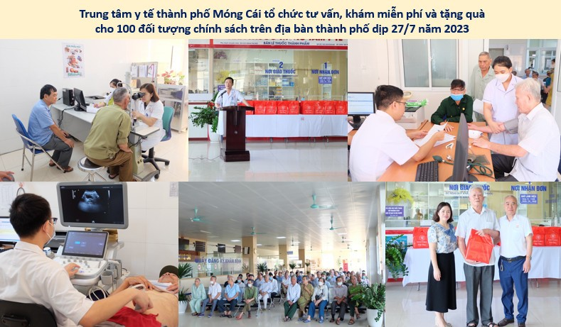 Tại Trung tâm y tế thành phố Móng Cái, đơn vị đã tổ chức tư vấn, khám, cấp thuốc miễn phí và tặng quà cho 100 đối tượng chính sách trên địa bàn thành phố Móng Cái. Ngoài ra, Trung tâm còn phối hợp với các đơn vị, xã, phường tổ chức khám sức khỏe cho đối tượng chính sách, người có công với cách mạng tại 17/17 xã, phường nhân dịp 27/7; gặp mặt, tặng quà cán bộ, nhân viên là thân nhân gia đình chính sách.