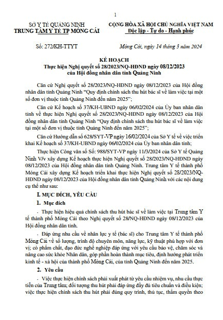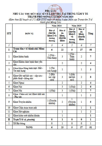 TRUNG TÂM Y TẾ THÀNH PHỐ MÓNG CÁI THU HÚT BÁC SĨ THEO NGHỊ QUYẾT 28/2023/NQ-HĐND CỦA HỘI ĐỒNG NHÂN DÂN TỈNH QUẢNG NINH