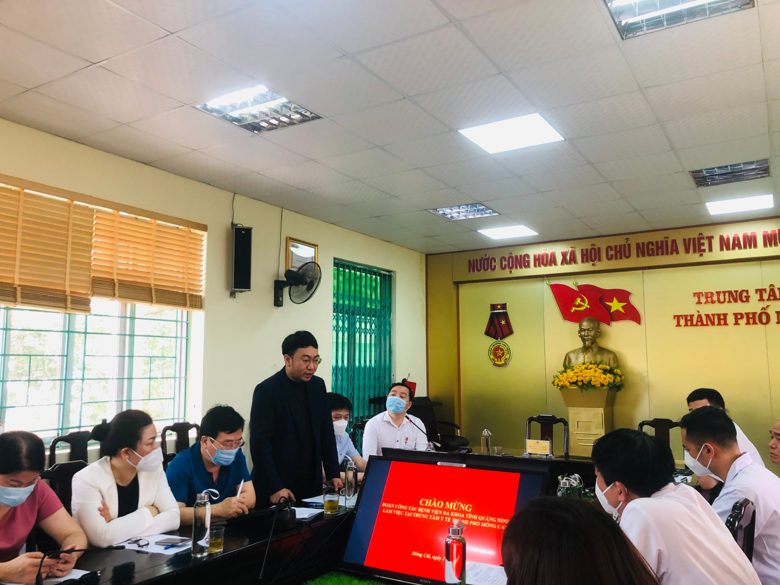 Thực hiện kế hoạch chỉ đạo tuyến, ngày 18/3, Đoàn công tác Bệnh viện đa khoa tỉnh, do Bs CKII Nguyễn Huy Tiến, Phó Giám đốc Bệnh viện cùng y bác sĩ phụ trách các chuyên khoa đầu ngành của Bệnh viện đã đến thăm, làm việc, trao đổi, để chuyển giao, hỗ trợ chuyên môn, kỹ thuật trong công tác khám, chữa bệnh cho Trung tâm y tế thành phố Móng Cái.