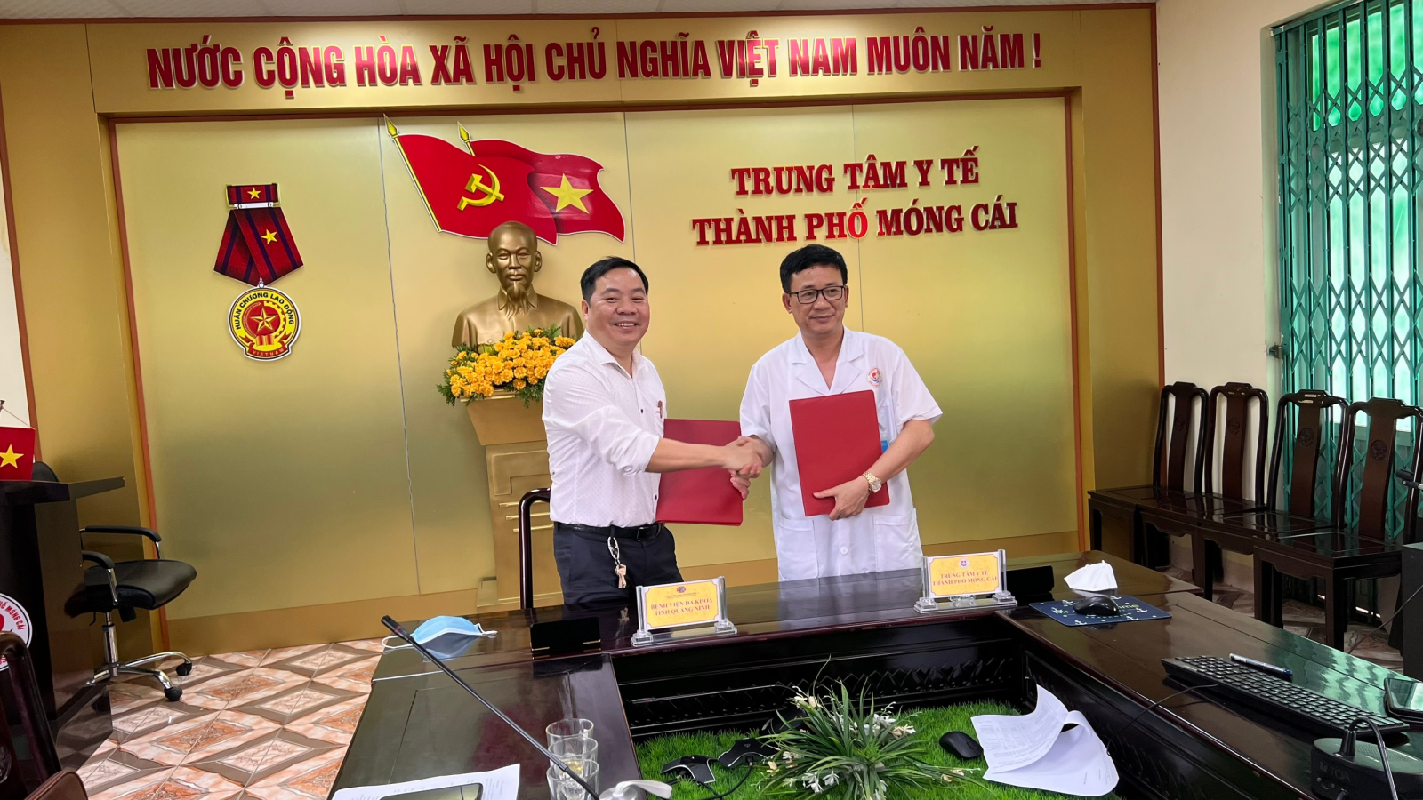 Đại diện Bệnh viện Đa khoa tỉnh Quảng Ninh và Trung tâm Y tế TP Móng Cái ký kết thỏa thuận đào tạo, chuyển giao chuyên môn kỹ thuật