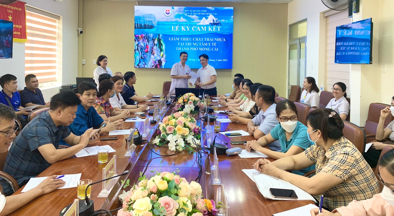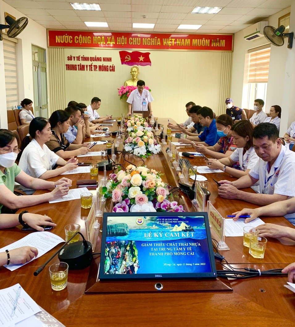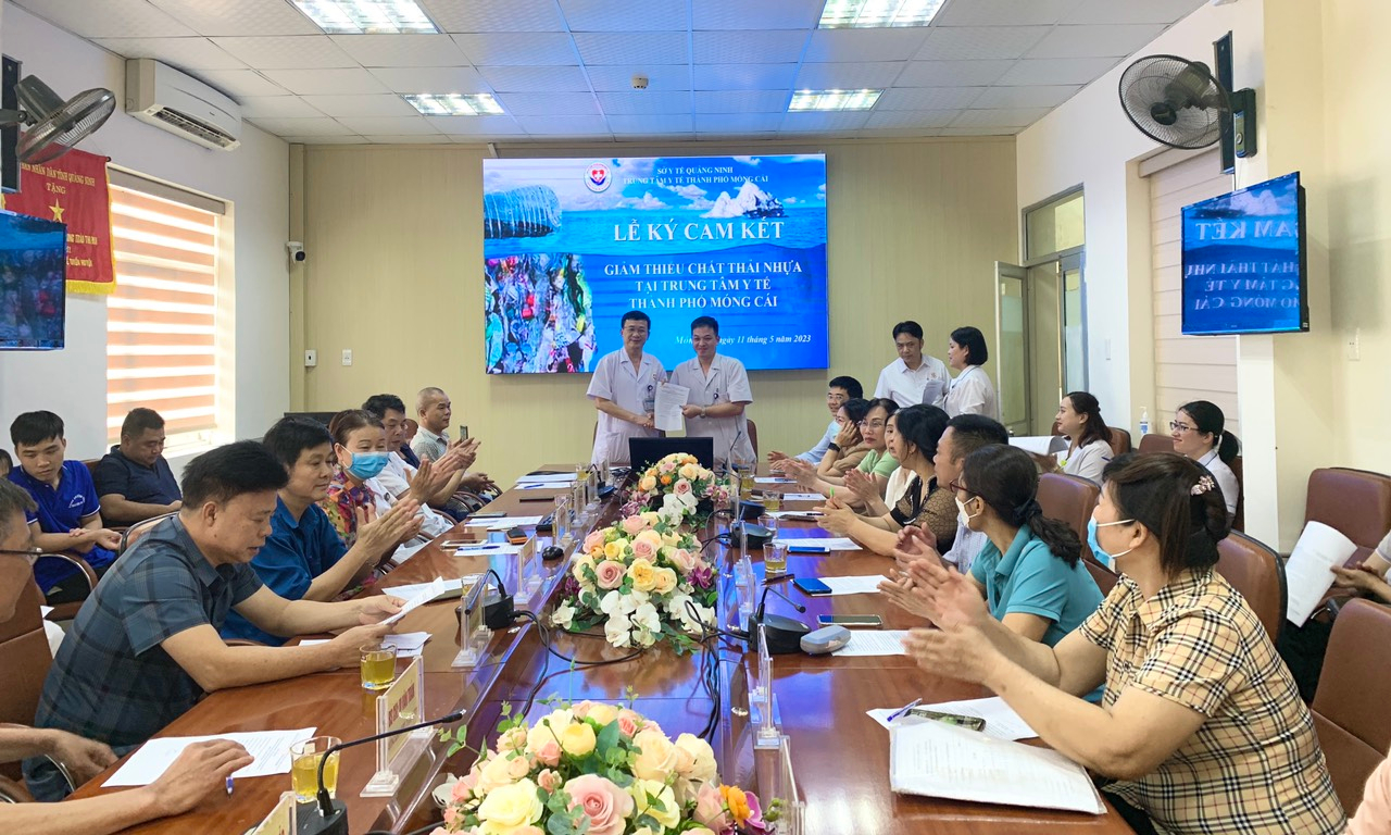 Thực hiện kế hoạch quản ký chất thải, bảo vệ môi trường, giảm thiểu sử dụng chất thải nhựa, ứng phó biến đổi khí hậu và đa dạng sinh học ngành y tế giai đoạn 2023 – 2025 của Trung tâm y tế thành phố Móng Cái. Ngày 11/5/2023, Trung tâm y tế thành phố Móng Cái đã tổ chức ký cam kết thực hiện giảm thiểu chất thải nhựa trong hoạt động của Trung tâm.