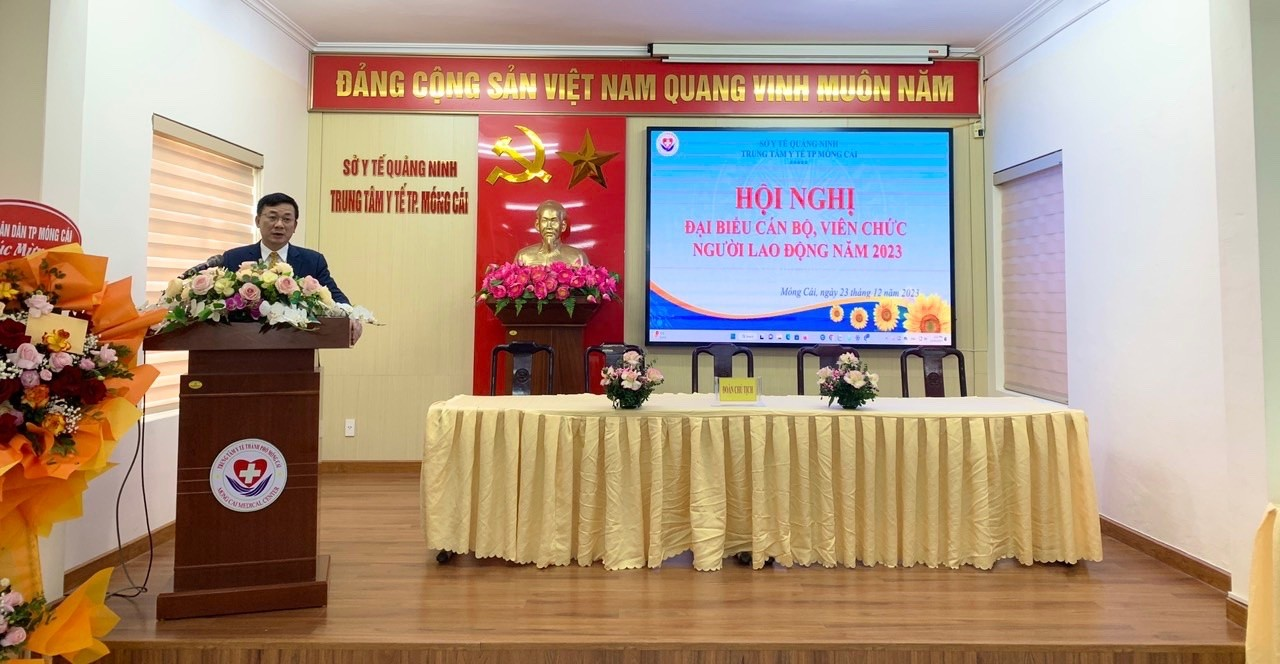 Ngày 23/12, Trung tâm Y tế thành phố Móng Cái đã tổ chức Hội nghị đại biểu cán bộ, viên chức và người lao động năm 2023. Hội nghị có sự tham dự và chỉ đạo của đồng chí Nguyễn Thu Hương – Thành ủy viên, Phó Chủ tịch UBND thành phố Móng Cái, đồng chí Bùi Mạnh Hùng – Phó Giám đốc Sở Y tế Quảng Ninh, đồng chí Dương Văn Cương – Phó Chủ tịch LĐLĐ thành phố Móng Cái.
