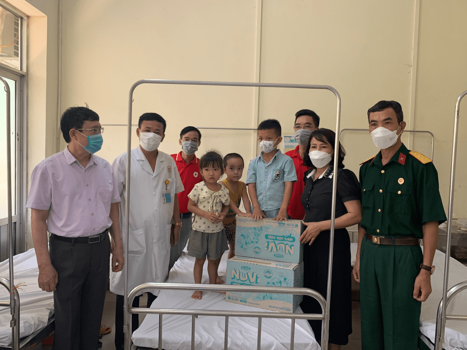 Đ/c Nguyễn Thu Hương, Phó Chủ tịch UBND thành phố, Bs.Đoàn Ngọc Thủy, Giám đốc Trung tâm Y tế cùng đại diện Hội Chữ thập đỏ, ban ngành, đoàn thể thành phố thăm hỏi, tặng quà trẻ em đang điều trị tại Trung tâm Y tế thành phố Móng Cái nhân dịp 1/6/2022
