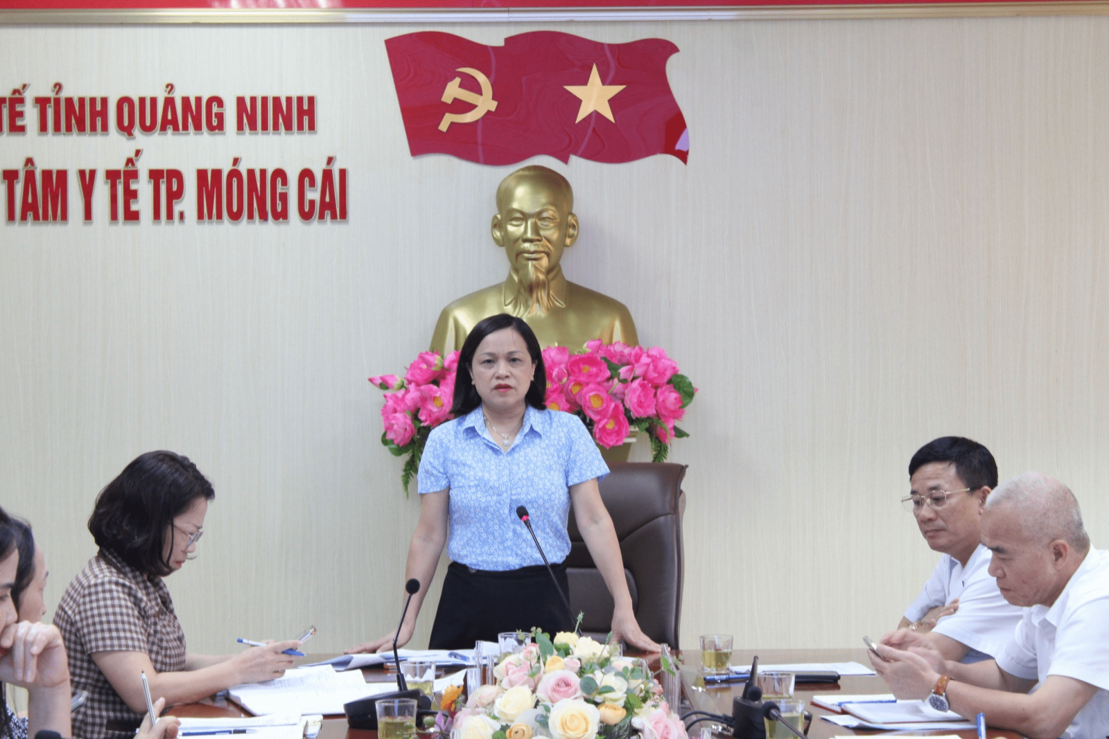 Làm việc với Đoàn, về phía Trung tâm Y tế thành phố Móng Cái có đồng chí Đoàn Ngọc Thuỷ, Giám đốc Trung tâm, các đồng chí trong Ban giám đốc, trưởng một số khoa, phòng và cán bộ trực tiếp phụ trách công tác bảo hiểm y tế, bảo hiểm xã hội của Trung tâm.