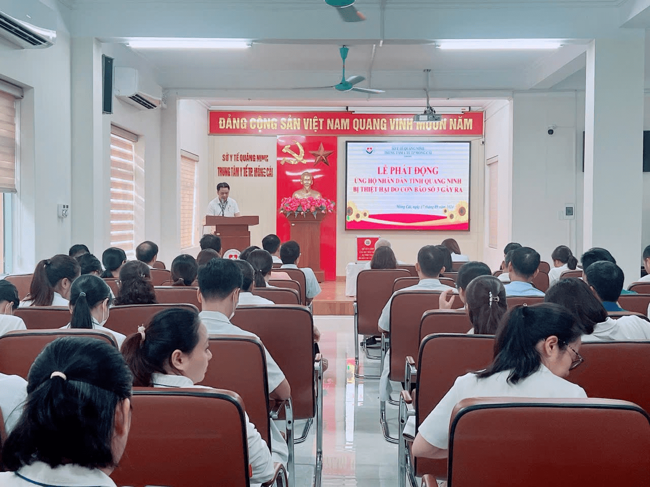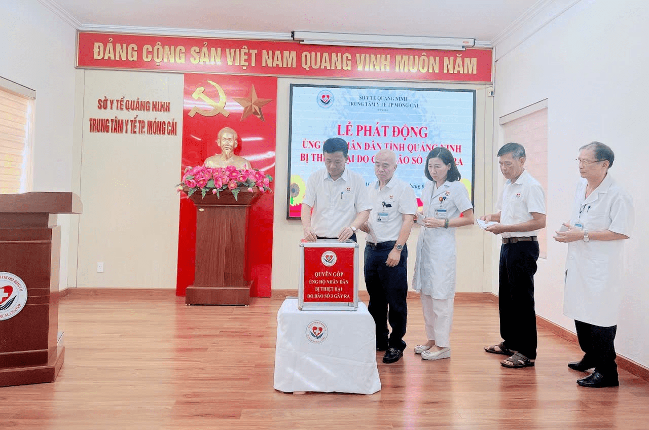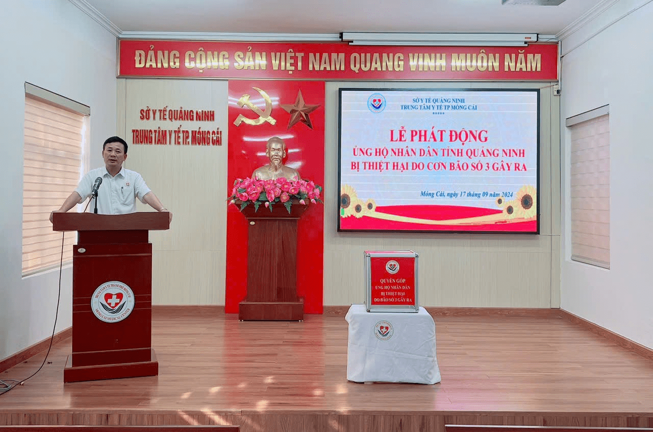 Hưởng ứng lời kêu gọi của Ủy ban Trung ương Mặt trận Tổ quốc Việt Nam, Ủy ban Mặt trận Tổ quốc tỉnh Quảng Ninh, Ủy ban Mặt trận Tổ quốc thành phố Móng Cái và Sở Y tế. Với tinh thần “tương thân tương ái”, “lá lành đùm lá rách”, nhằm góp thêm nguồn lực hỗ trợ đồng bào khắc phục thiệt hại do cơn bão số 3 gây ra. Chiều ngày 17/9/2024, Trung tâm Y tế thành phố Móng Cái đã tổ chức Lễ phát động ủng hộ nhân dân tỉnh Quảng Ninh bị thiệt hại do cơn bão số 3 gây ra.