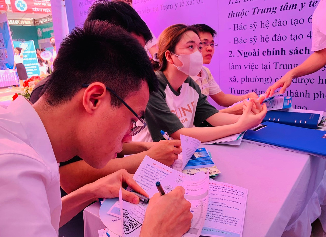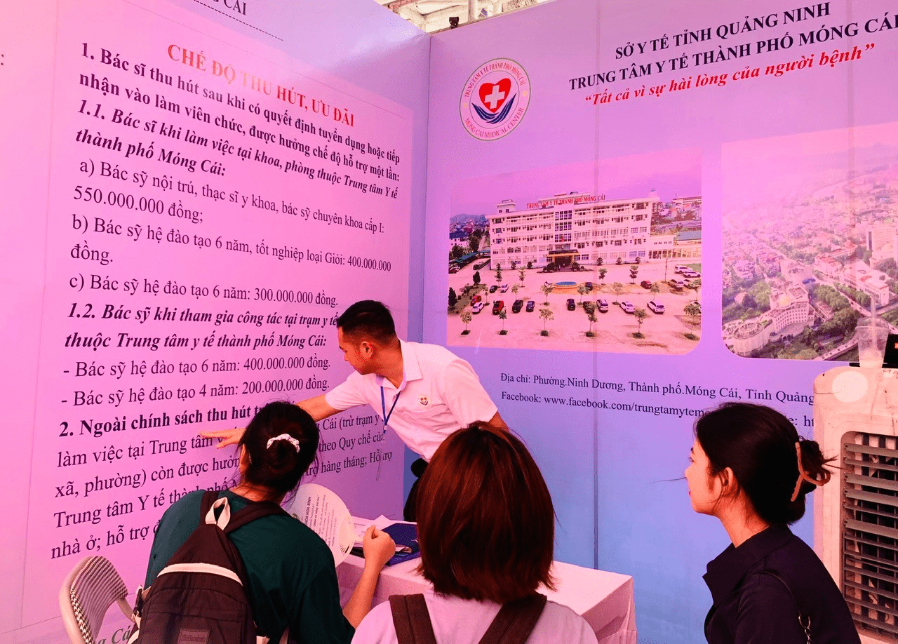 Hội chợ việc làm, là dịp để đơn vị kết nối, tìm được những ứng viên xuất sắc cùng dựng xây Trung tâm Y tế thành phố Móng Cái, cung cấp những dịch vụ khám chữa bệnh, chăm sóc sức khỏe chất lượng, toàn diện cho nhân dân.