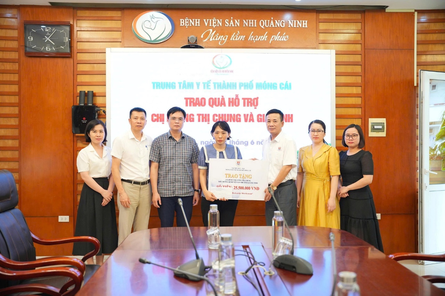 Chiều 04/6/2025, tại Bệnh viện Sản Nhi tỉnh Quảng Ninh, Thạc sĩ, bác sĩ Đoàn Ngọc Thủy – Giám đốc Trung tâm Y tế thành phố Móng Cái cùng các cán bộ, nhân viên Trung tâm đã đến thăm hỏi, động viên và trao tặng số tiền 25.500.000 đồng hỗ trợ tới gia đình chị Lường Thị Chung – vợ của người hiến tạng.