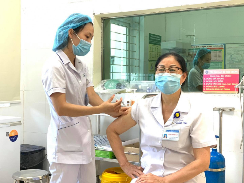 Bác sĩ Bệnh viện Sản Nhi Quảng Ninh được tiêm vắc xin phòng Covid-19.