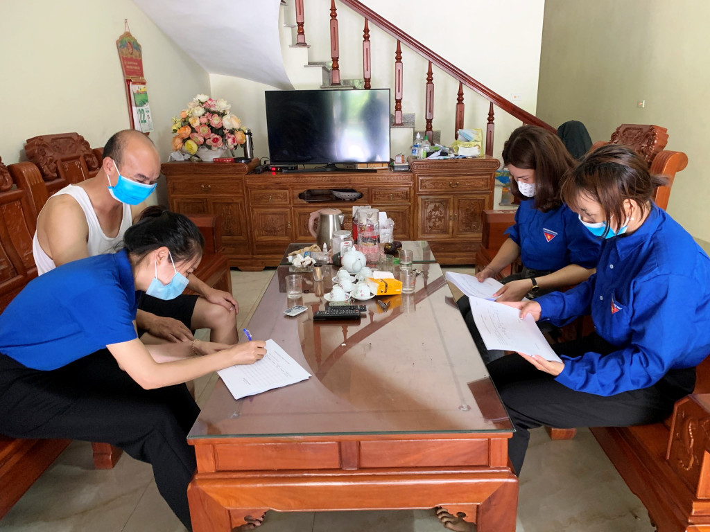 ĐVTN phường Trà Cổ (TP Móng Cái) rà soát tất cả các hộ dân tại 4/4 khu về nhu cầu đăng ký tiêm vắc xin phòng Covid-19.