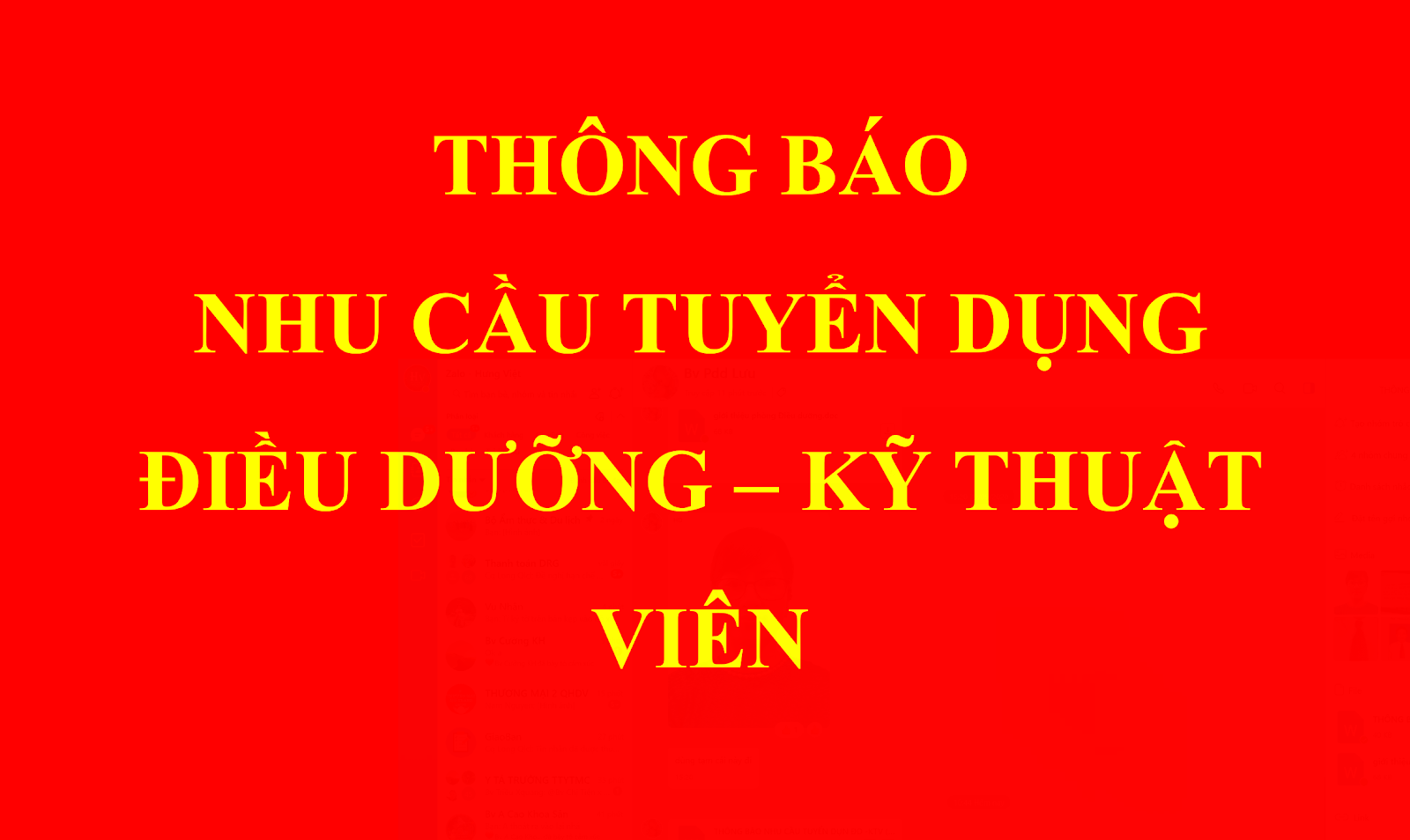 THÔNG BÁO NHU CẦU TUYỂN DỤNG (ĐIỀU DƯỠNG - KTV) 2020