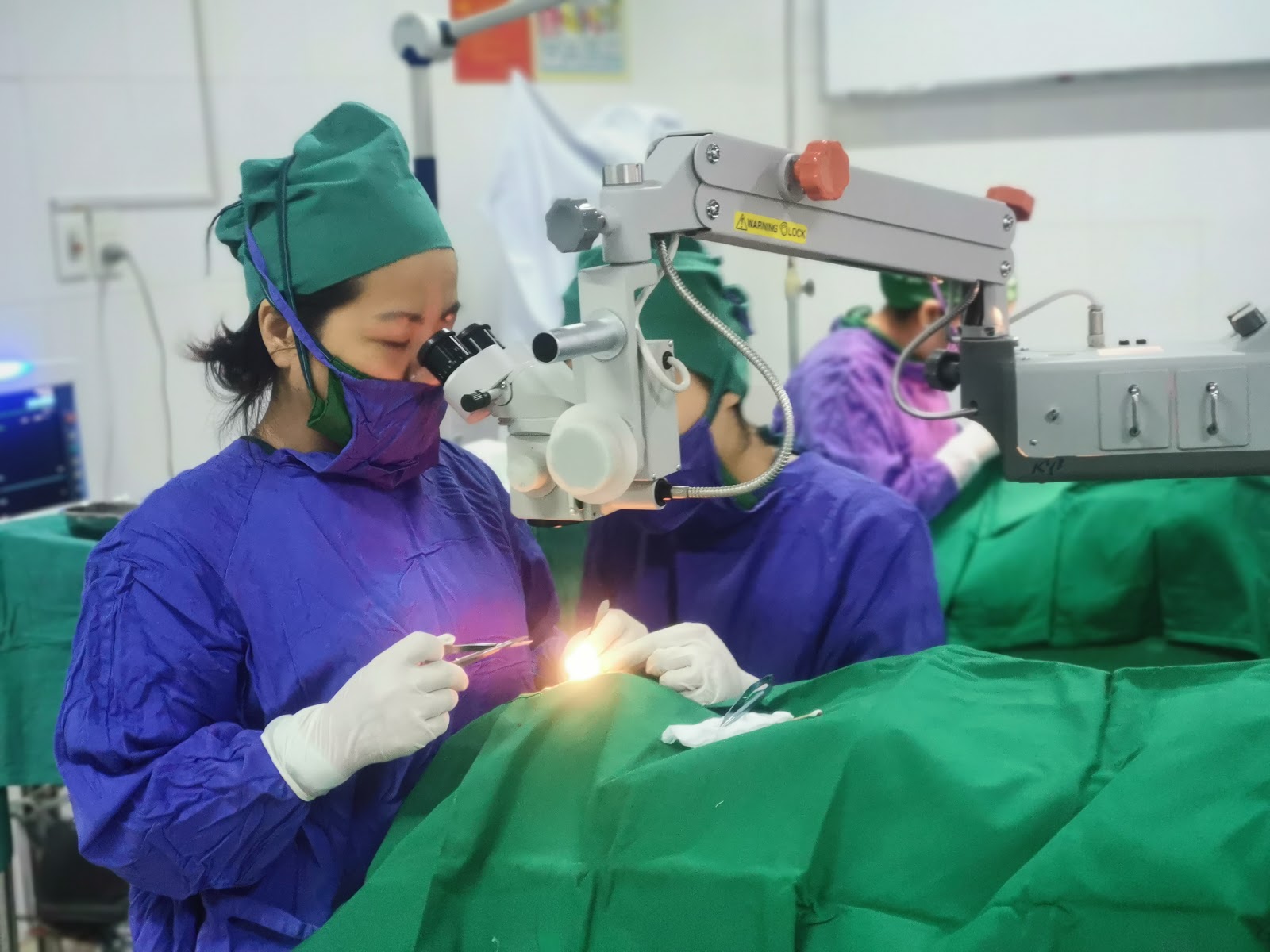 Trung tâm Y tế thành phố Móng Cái phối hợp với Bệnh viện Mắt Trung ương, Bệnh viện Bãi Cháy, thực hiện phẫu thuật thay thủy tinh thể.