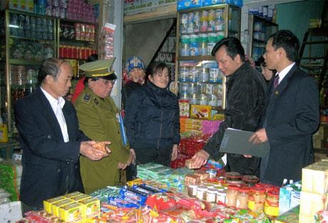 Đoàn liên ngành của tỉnh và huyện Hoành Bồ kiểm tra VSATTP các cơ sở kinh doanh bánh, kẹo trên địa bàn huyện.