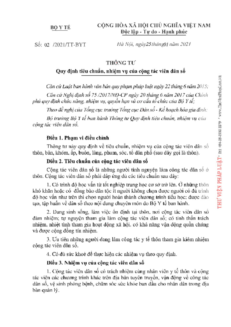 | Tiêu đề văn bản | Quy định tiêu chuẩn, nhiệm vụ của cộng tác viên dân số | ||